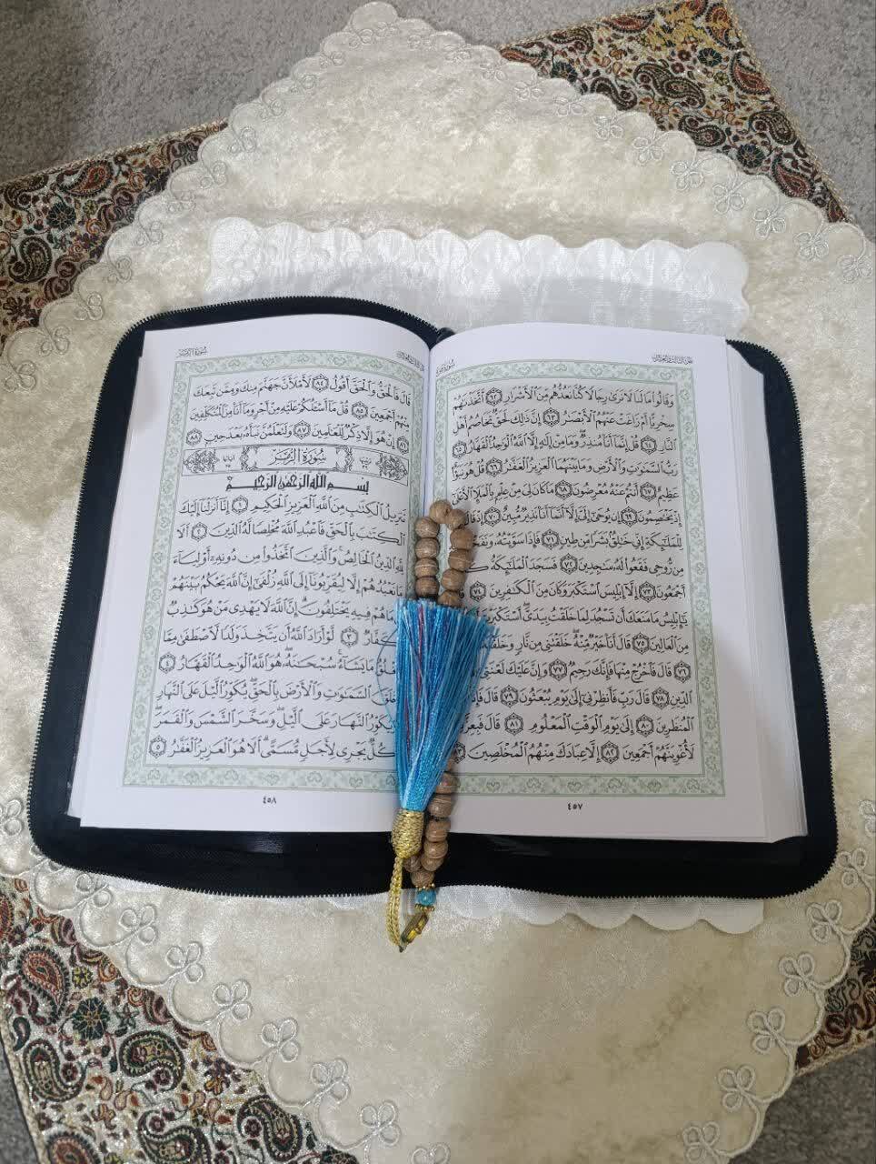 قرآن موجود با خط محبوب عثمان طه ، صفحات 15 خطی ، بدون ترجمه و بارنگ زمینه سبز ملایم تمام شاخصه های یک قرآن مخصوص حفظ را داراست.